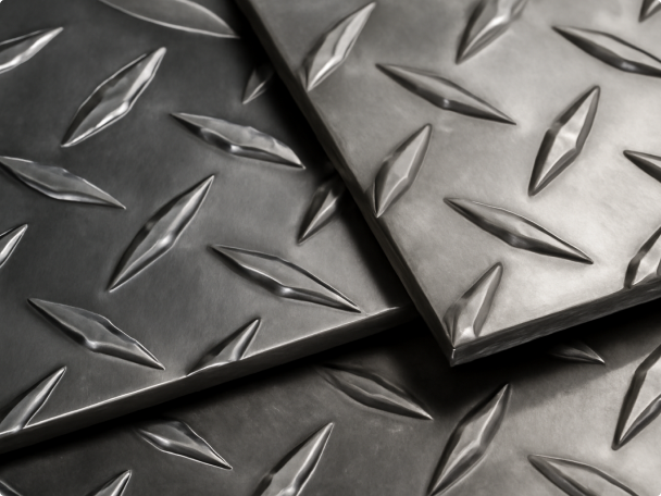 일반적인 철판에 산 무늬가 있는 제품으로 주차장의 바닥이나 계단에 주로 사용됩니다. 국내에서는 현대제철이 유일하게 생산하고 있습니다.